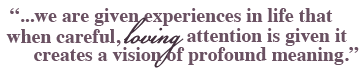|   I truly believe that we are given experiences that can create a vision of profound meaning and when careful and loving attention is paid to these experiences it can open a path to one's true calling.