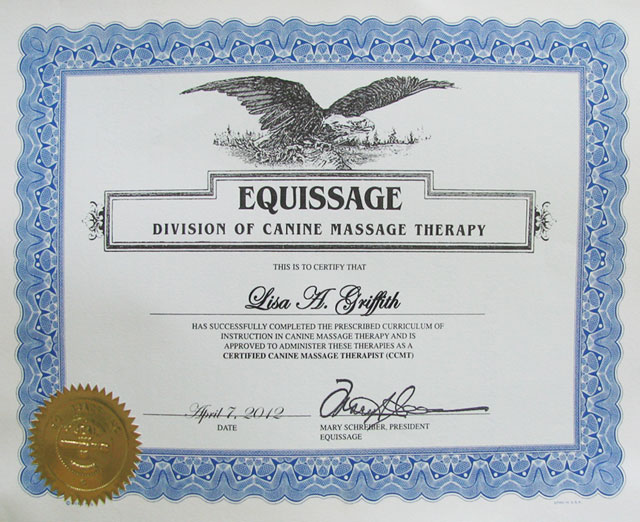 After researching what program would be the most comprehensive, I found Equissage. This program would encompass Canine and Equestrian therapies. I became very impressed by what I learned about Equissage, their techniques and philosophy. I decided to embark on certification.